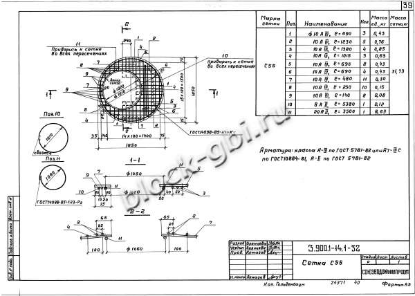 - Сетка С55: основной армирующий элемент, обеспечивающий прочность конструкции;