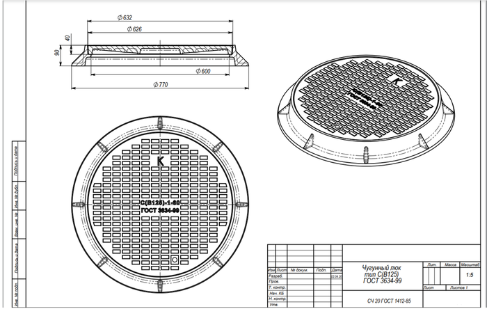 Каждый люк С (В125) К.2.7-60 проходит многоступенчатый контроль качества в соответствии с ГОСТ 3634-2019. Проверяются: