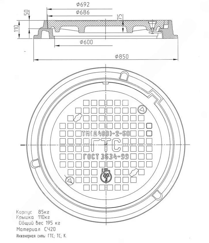 Люк ТМ (Д400) К.1-60 ГОСТ 3634-99