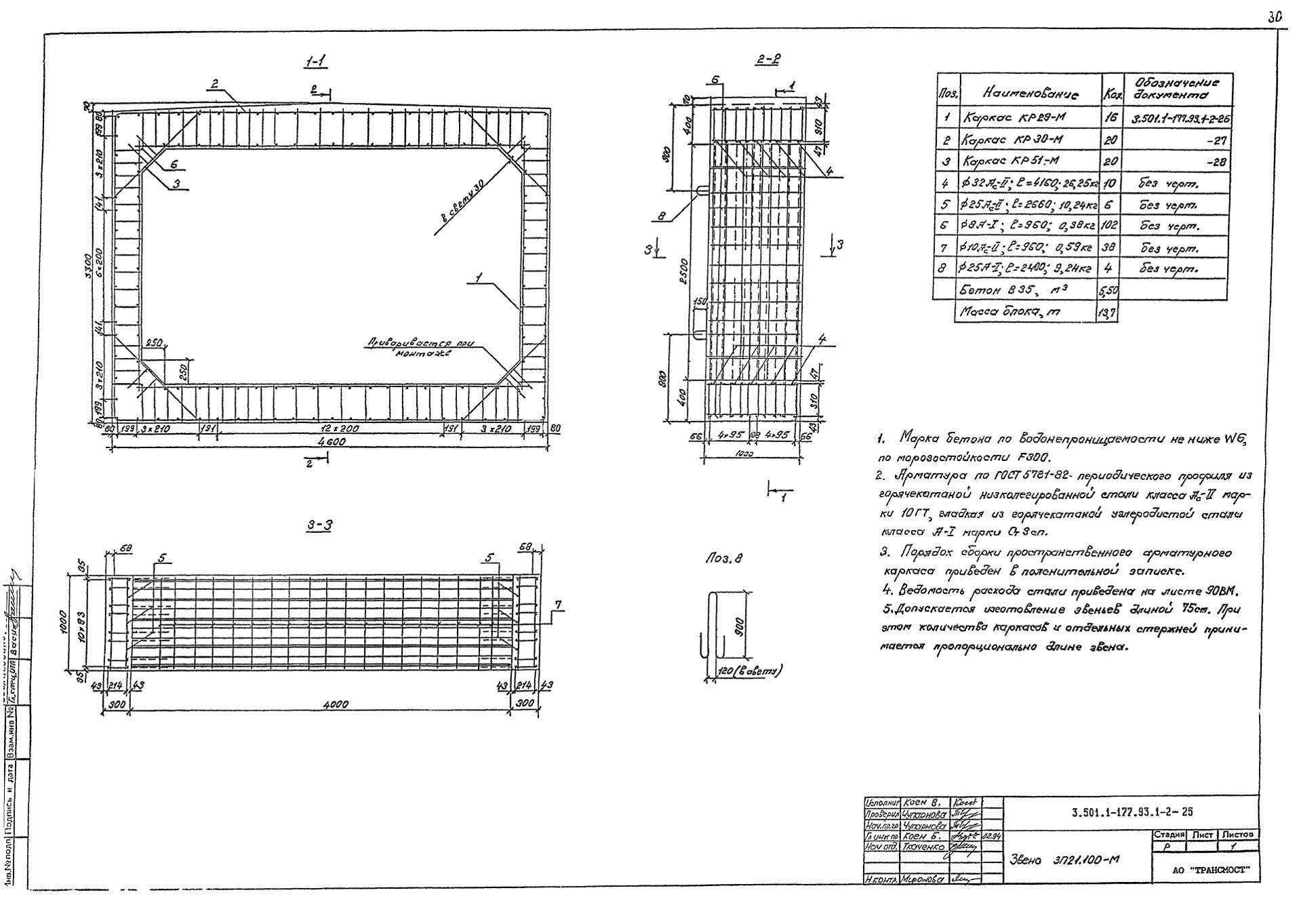 Железобетонные ЗП 21.100-М для прямоугольных водопропускных труб армируются сетками и каркасами из стержней периодического профиля из углеродистой горячекатаной стали класса А-II. Монтажные петли конструкций изготавливаются из стержневой гладкой горячекатаной арматурной стали класса А-I или периодического профиля класса Ас-II.